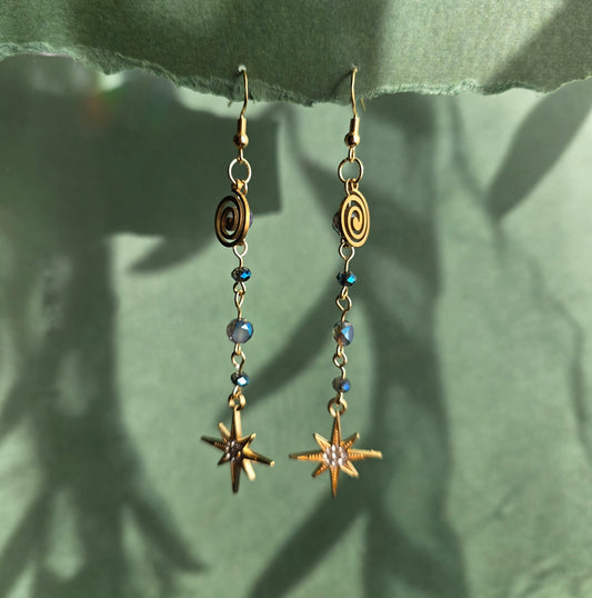 STAR Spiral Mushroom Dream Celestial with Gold Dangle Earrings